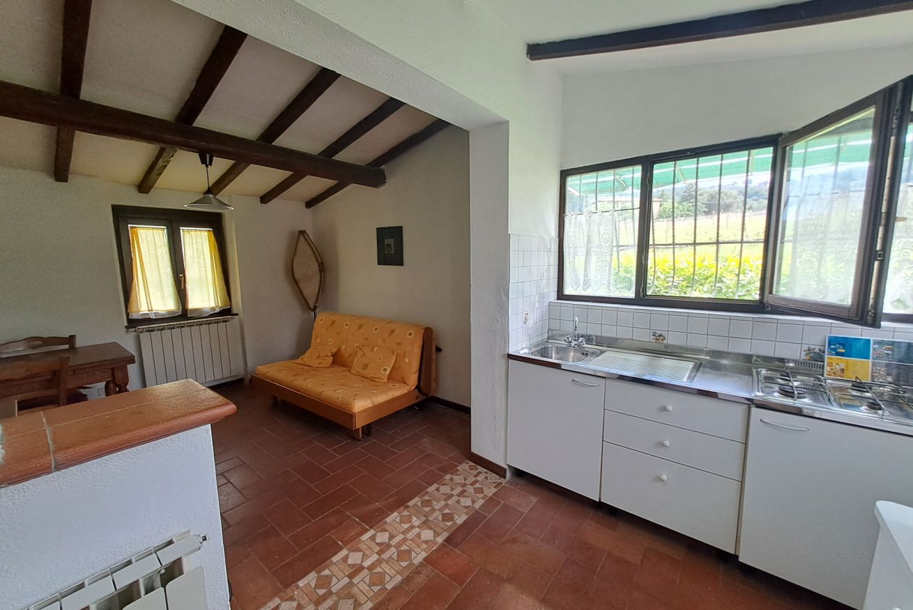 L'unità abitativa è cosi disposta: all'entrata si presenta un disimpegno con la cucina completamente attrezzata corredata da tv, un piccolo soggiorno, una sala da pranzo con un divano/letto matrimoniale, una camera matrimoniale e il bagno.