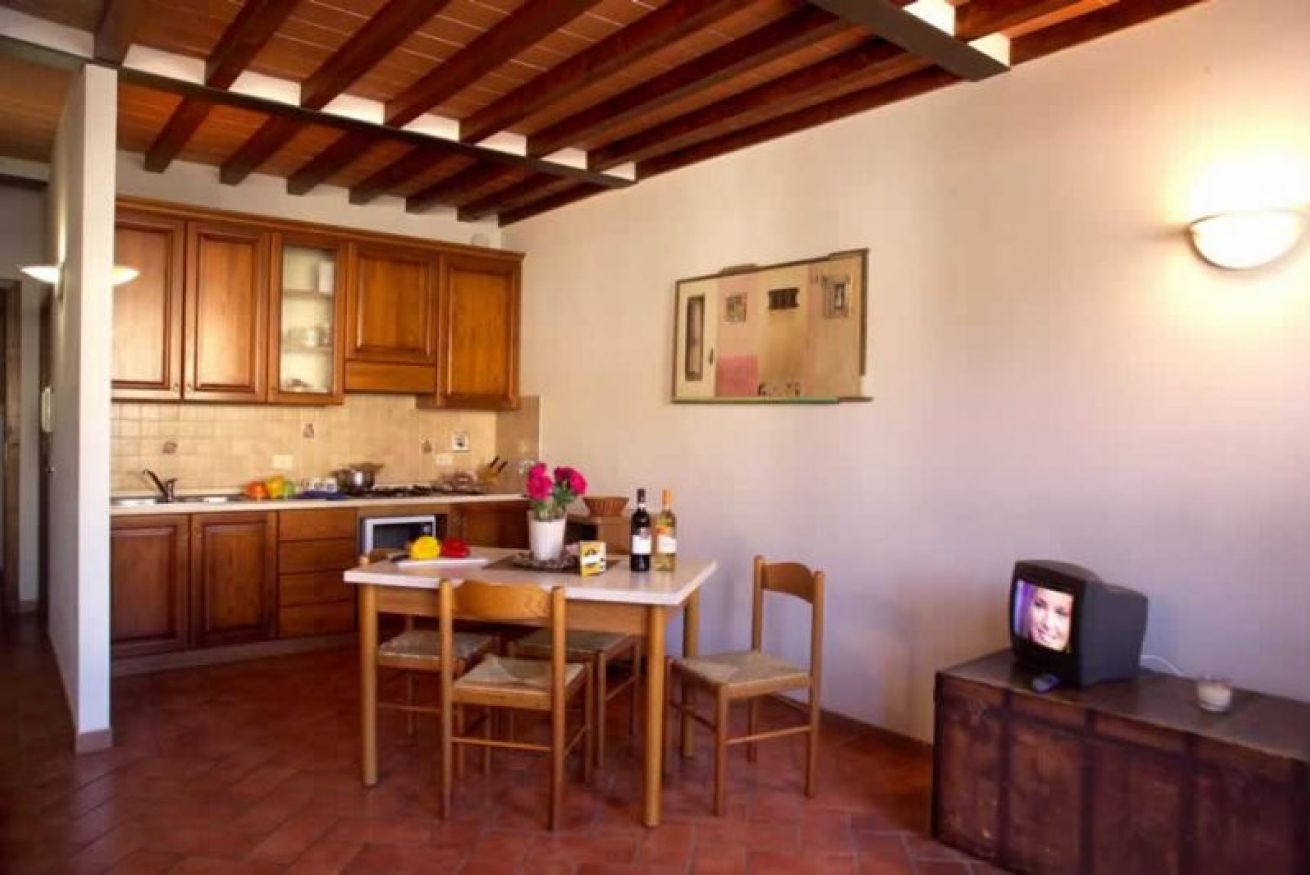 Ristrutturata mantenendo le caratteristiche architettoniche Toscane e ambientali, l'unità abitativa è disposta su due piani; al piano terra è presente la cucina soggiorno con tv caratterizzata dal soffitto con le travi in legno, ed il primo bagno. Salendo la scala si arriva troviamo una camera matrimoniale, una camera tripla e un altro bagno.
